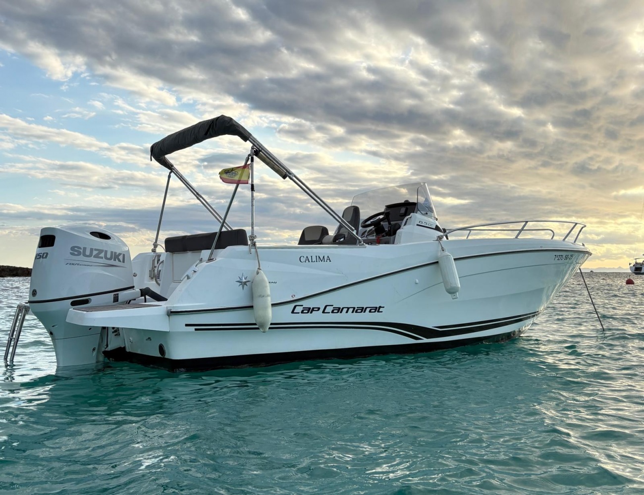 Su distribución cuenta con una cocina en la cabina, así como un gran salón con amplio sofá, convertible en una gran cama. En proa se encuentra el camarote principal con doble cama y espacios para el almacenaje.