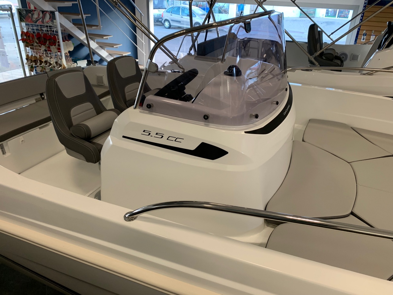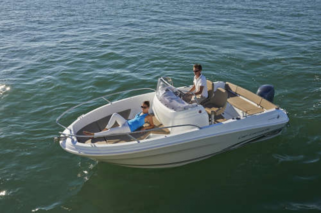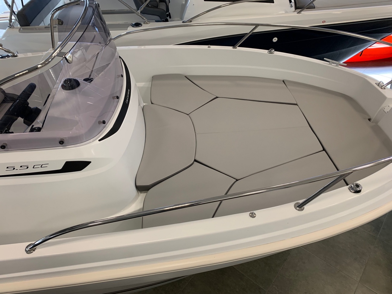 Fantástica embarcación Jeanneau Cap Camarat 5.5CC Serie 2 - OPORTUNIDAD reestreno, muy pocas horas de navegación y perfecto estado. El diseño del casco hace que la navegación se sienta segura y cómoda. Además, la distribución interior con el gran solarium en proa, y la práctica consola central junto con los asientos y banco trasero en popa, es ideal para salidas diarias, para la práctica de cualquier deporte náutico, salidas familiares o con amigos. Disfruta del mar con esta genial embarcación. Otras ventajas: se puede llevar con licencia de navegación, y no pasa inspección ITB al ser inferior a 6 mts de eslora.