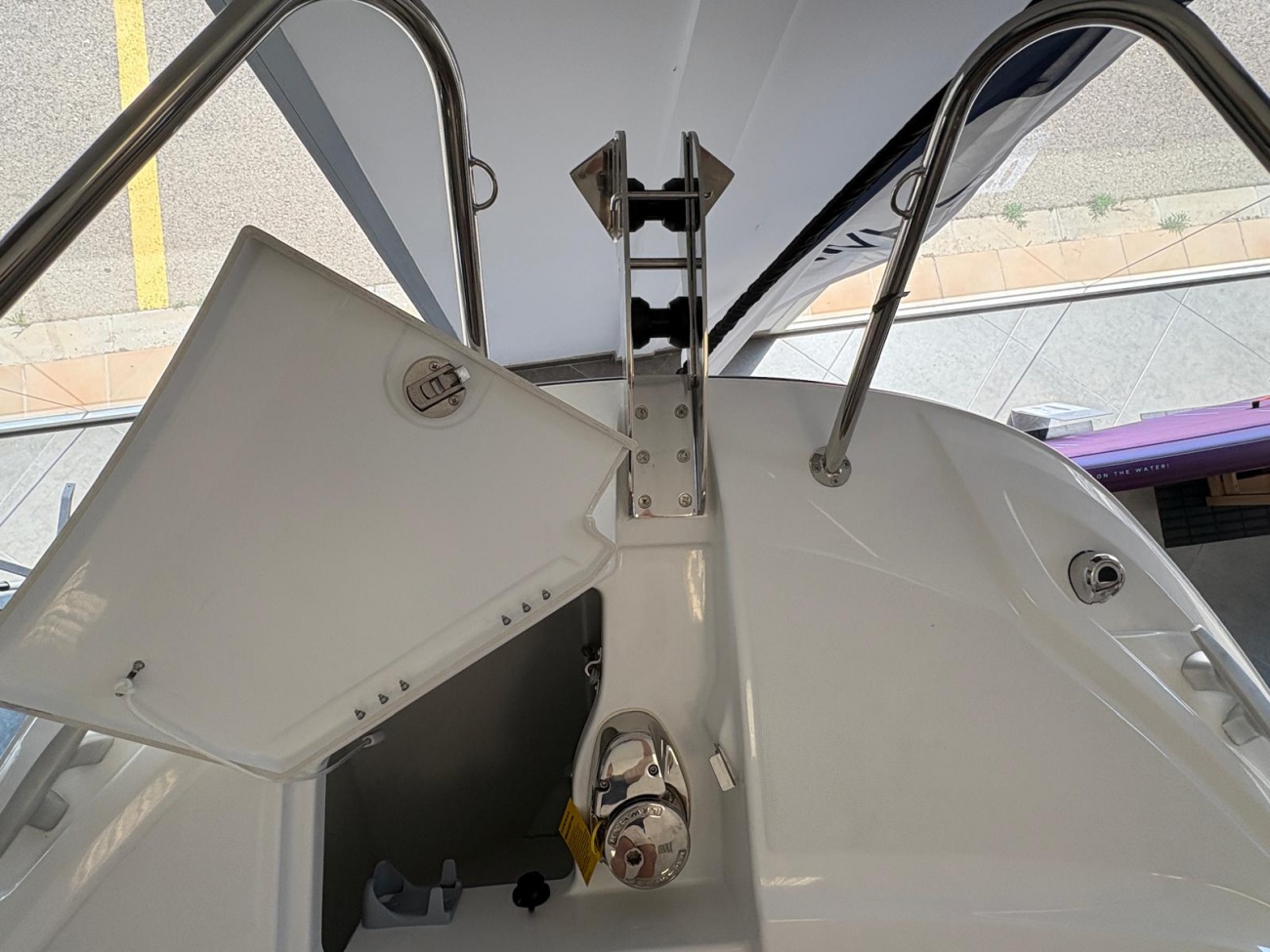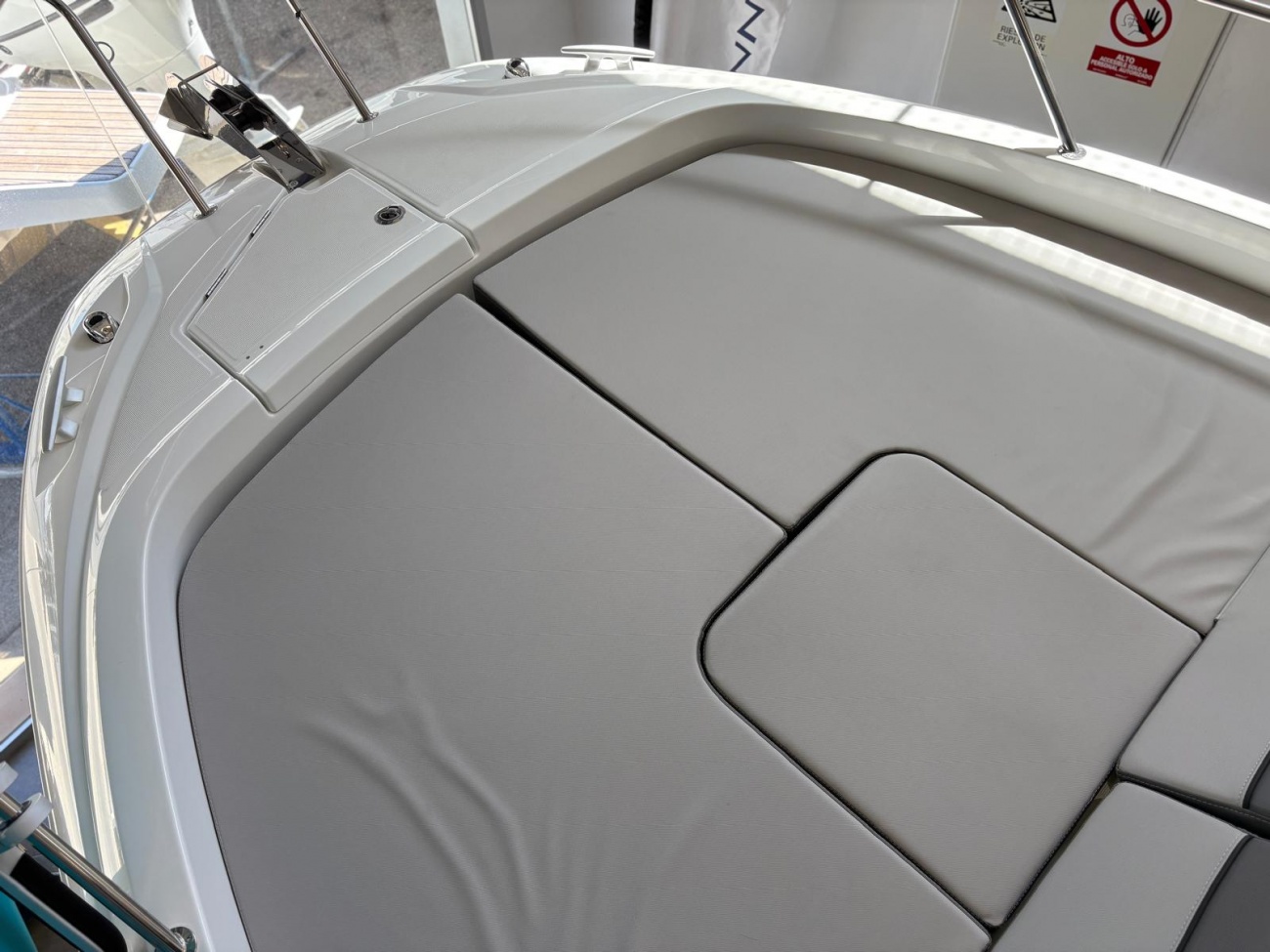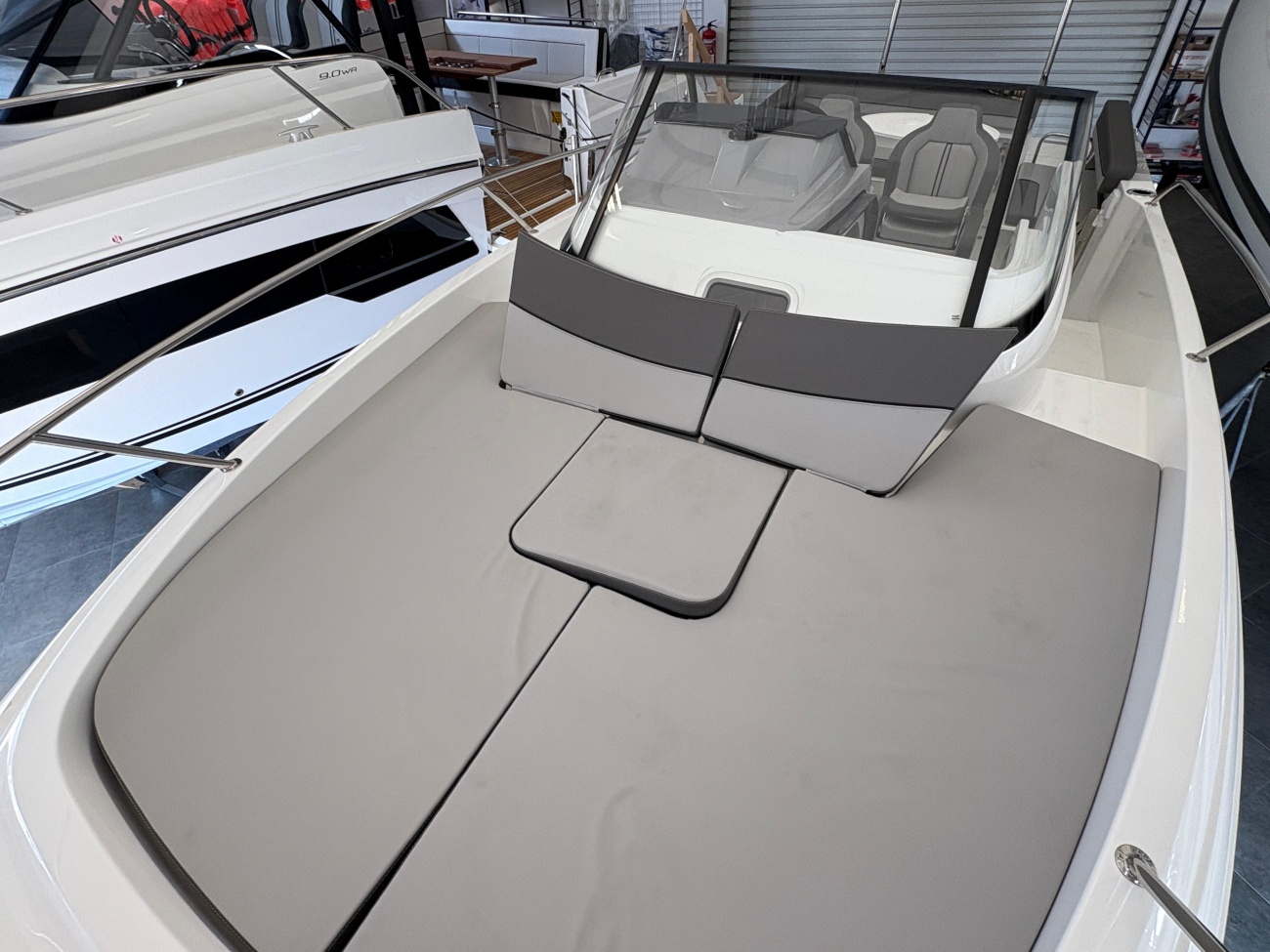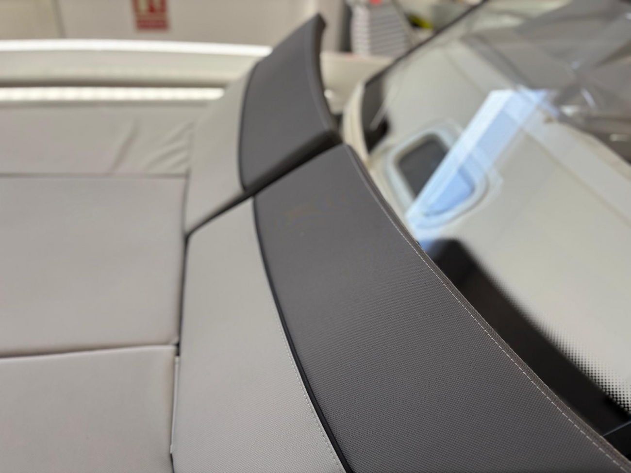 Con su casco en V profundo y estable, responde muy bien a cualquier condición de navegación. Tiene una línea moderna, una proa espaciosa con solárium y una bañera pensada para relajarse, pescar o compartir un buen picoteo al atardecer.
