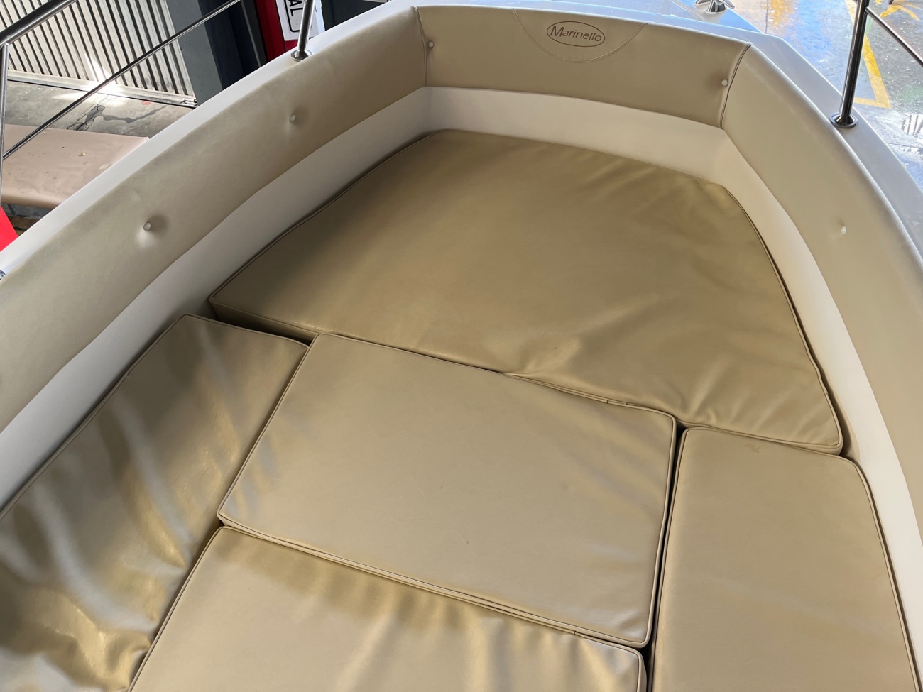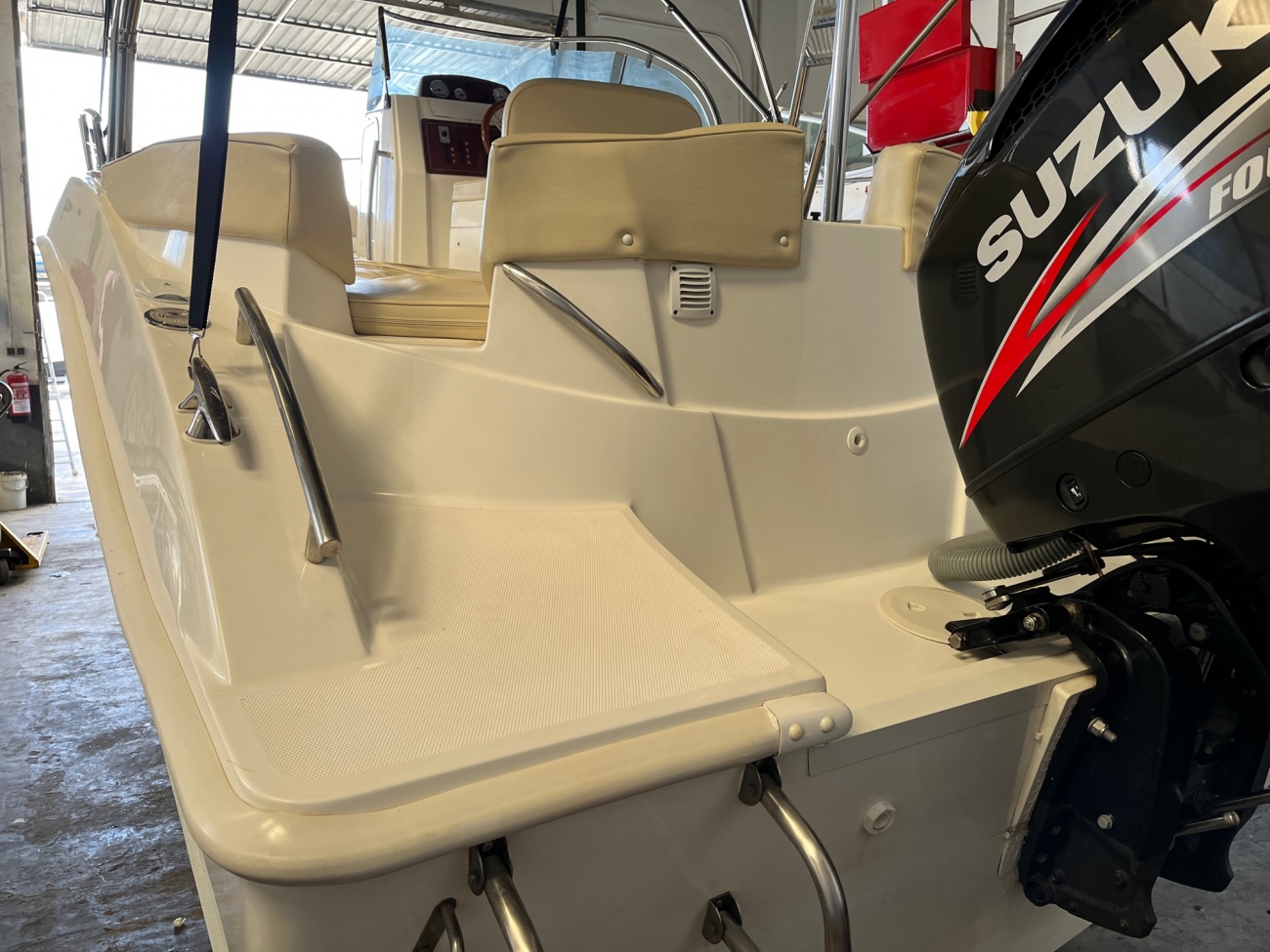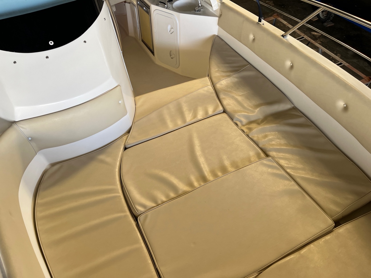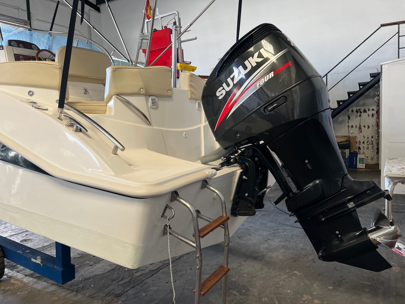 Embarcación en muy buen estado, con una distribución ideal para las salidas diarias, con varios espacios para el relax, zona de comedor convertible en solarium, además de un mueble auxiliar con cocina y nevera exterior que aumenta el confort y la versatilidad a bordo. Cuenta también con un WC muy conveniente, así como un buen equipamiento. Colchonetas completas, comedor popa convertible en solarium, gran toldo parasol inox, mueble con cocina y nevera eléctrica, fregadero, varios cofres estiba, mástil ski, mesa.