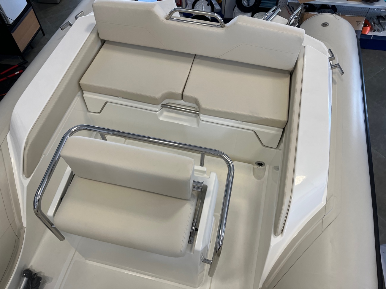 El Coaster 580 Plus concentra una suma de grandes detalles en menos de 6 metros. La cubierta ha sido diseñada para ofrecer el máximo espacio a bordo. Doble solárium en proa y popa con laterales acolchados y posibilidad de ampliación gracias a una extensión con cojín solarium adicional. La experiencia de confort es realmente extraordinaria! Pequeño y fácil de manejar, el Coaster 580 Plus es un barco simple de usar y mantener. Fácilmente remolcable, te acompañará a todas partes y se convertirá en tu compañero de aventuras brindándote espacio a bordo, buena navegabilidad y CERO estrés. Apto para llevar con Licencia de Navegación. No pasa ITB