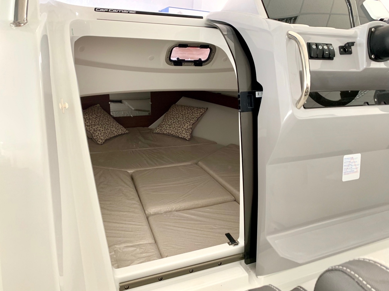 Todo un referente de la gama Jeanneau Cap Camarat, la 6.5 WA S3 cuenta con una línea moderna y dinámica, a la vez que una mejora importante en el espacio y distribución. Ofrece el equilibrio perfecto entre rendimiento y seguridad para todos. Su casco en forma de V progresiva garantiza un comportamiento seguro en el mar y un verdadero confort en la navegación. Además, su gran cama doble interior hace que este barco gane en versatilidad, y pueda pasar noche a bordo. Sin duda, !un gran barco para disfrutar