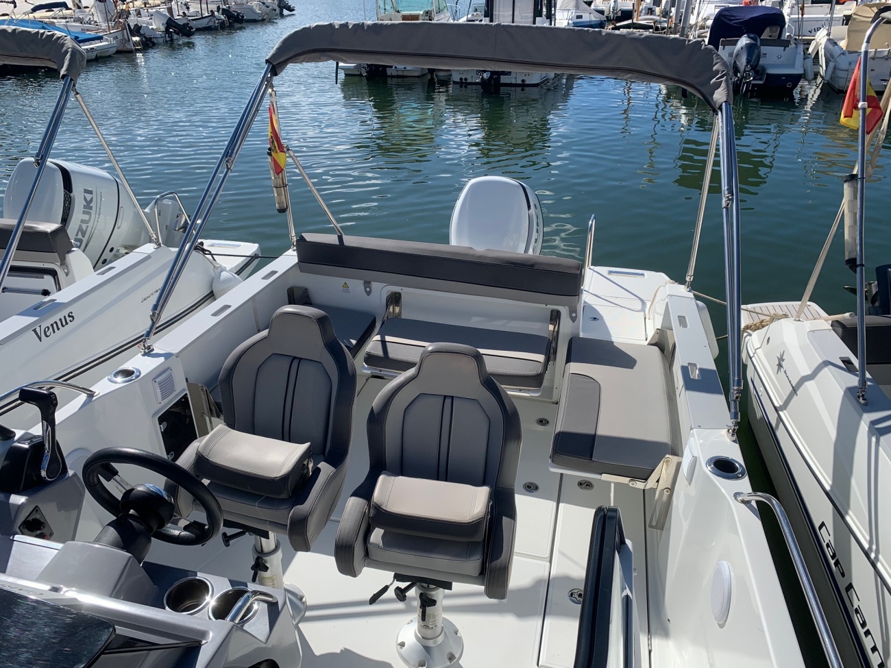 La Nueva versión de la magnífica Cap Camarat 7.5WA éxito de ventas, ideal para poder disfrutar del sol, la navegación y cualquier actividad náutica que desees realizar. El casco en forma de V firmado por Michael Peters asegura un buen comportamiento en el mar, con una excelente maniobrabilidad en la navegación, en cualquiera que sean las condiciones de navegación y del mar. La cabina con cama doble permite instalarse cómodamente para pasar la noche a bordo. Una buena oportunidad de comprar un barco en muy buen estado a un precio competitivo. Barco procedente de ALQUILER en temporada verano 23 Y 24.