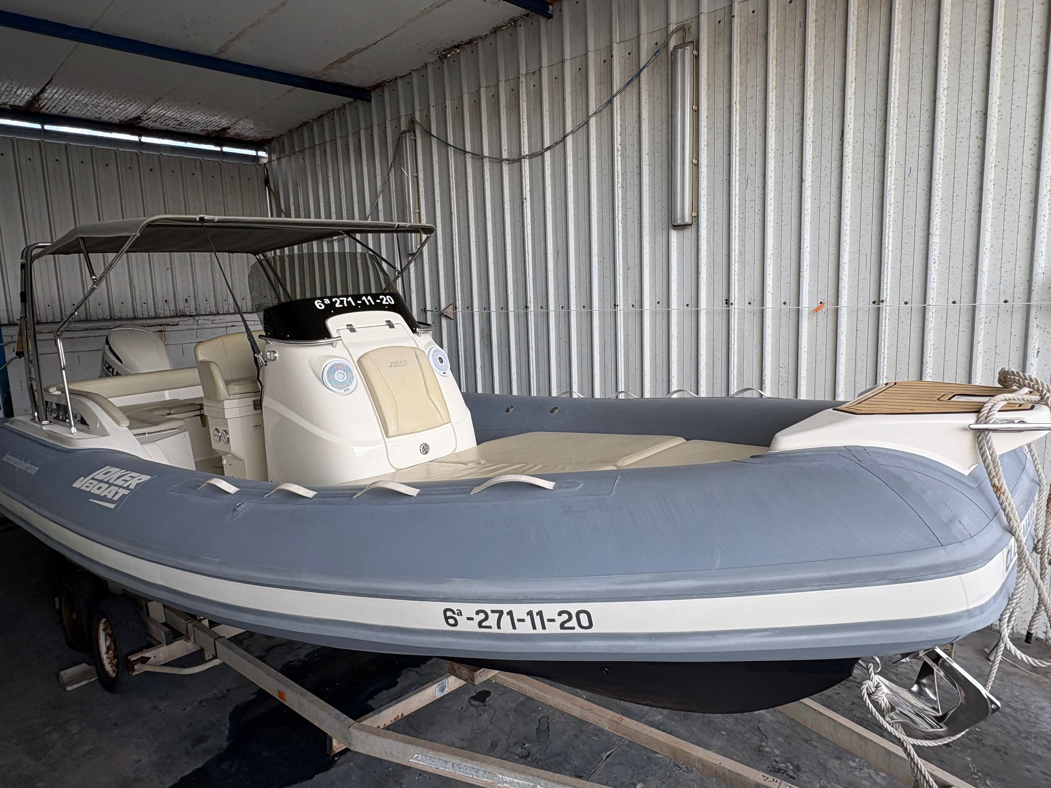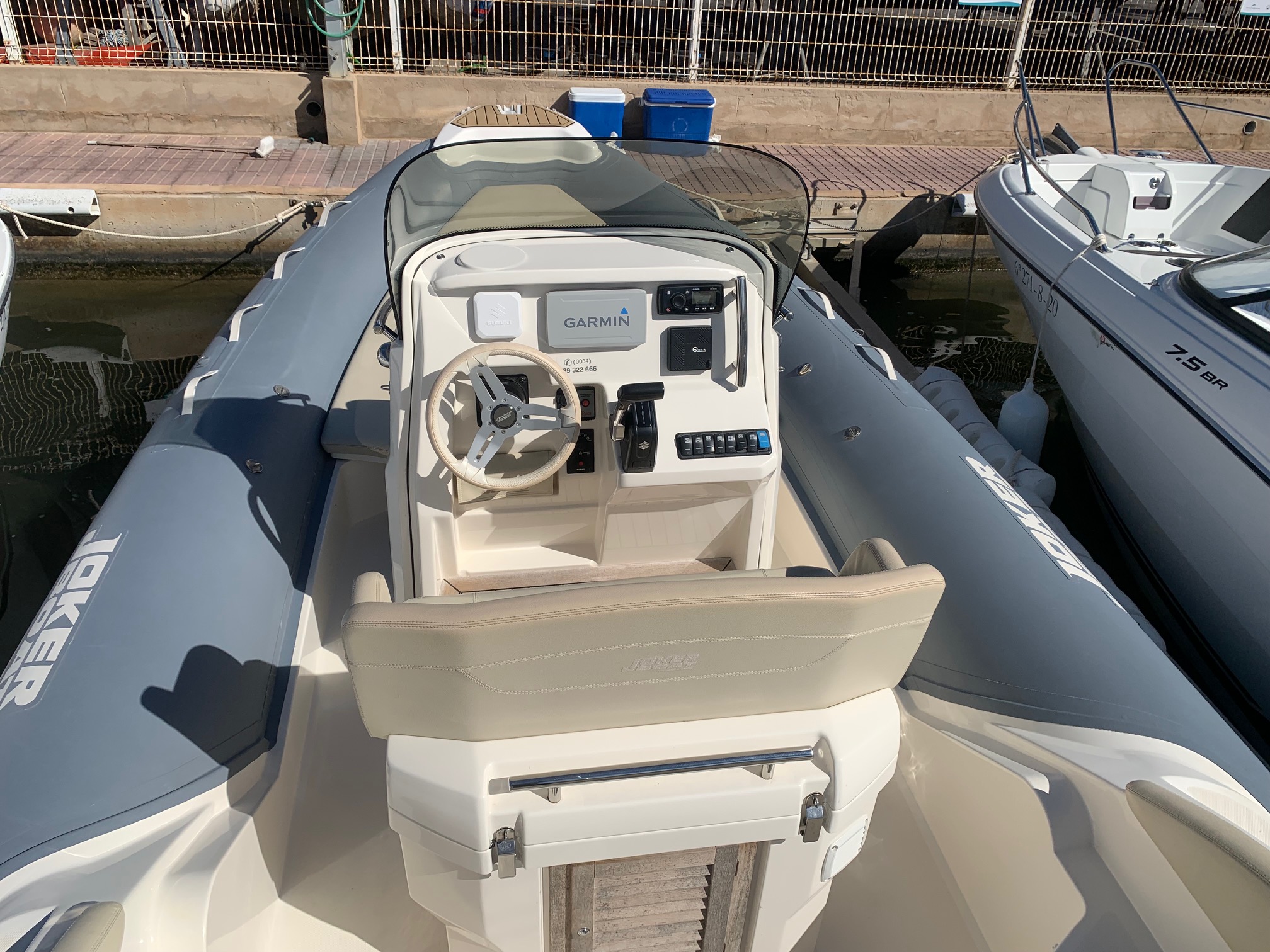 Embarcación procedente de ALQUILER en temporada verano: amplios espacios que maximizan el confort a bordo: gran solarium en proa, y en popa un gran salón en forma de U con mesa de madera, convertible además en un solarium extra. Como todas las Joker Boat, se caracteriza por su alta calidad en los materiales de fabricación, robustez y seguridad en la navegación. Además cuenta con mucho espacio de almacenaje, siempre útil y necesario. Su puesto de pilotaje está pensado para la comodidad de la navegación, y cuenta con espacio de estiba. Bajo el asiento existe un útil lavamanos y espacio de trabajo, así como más almacenaje.