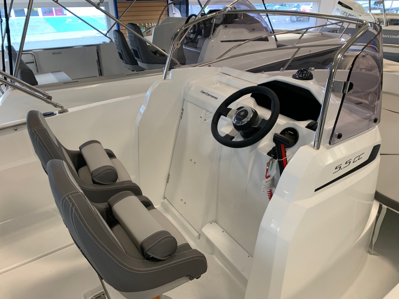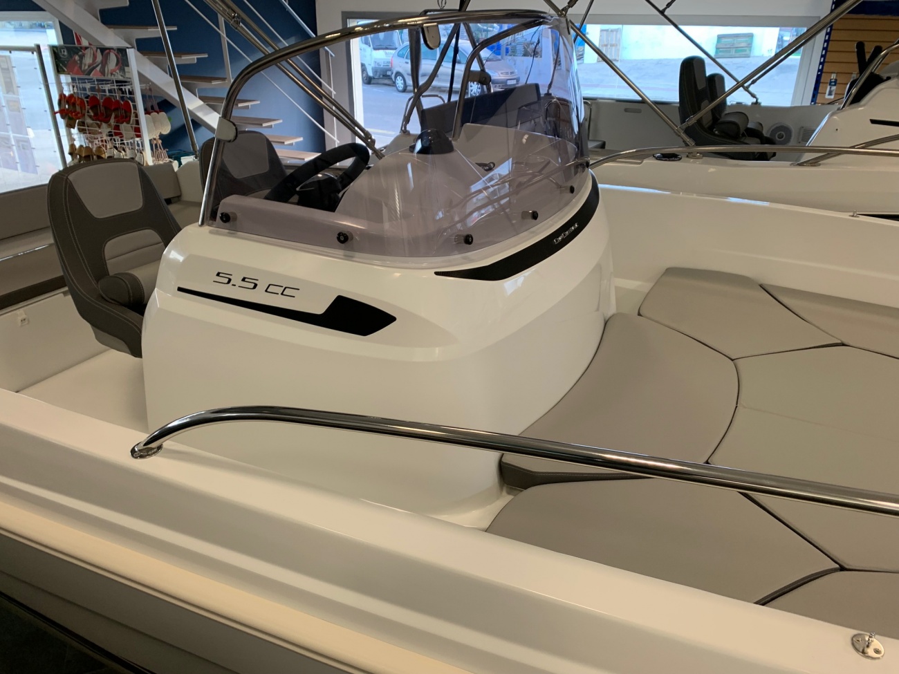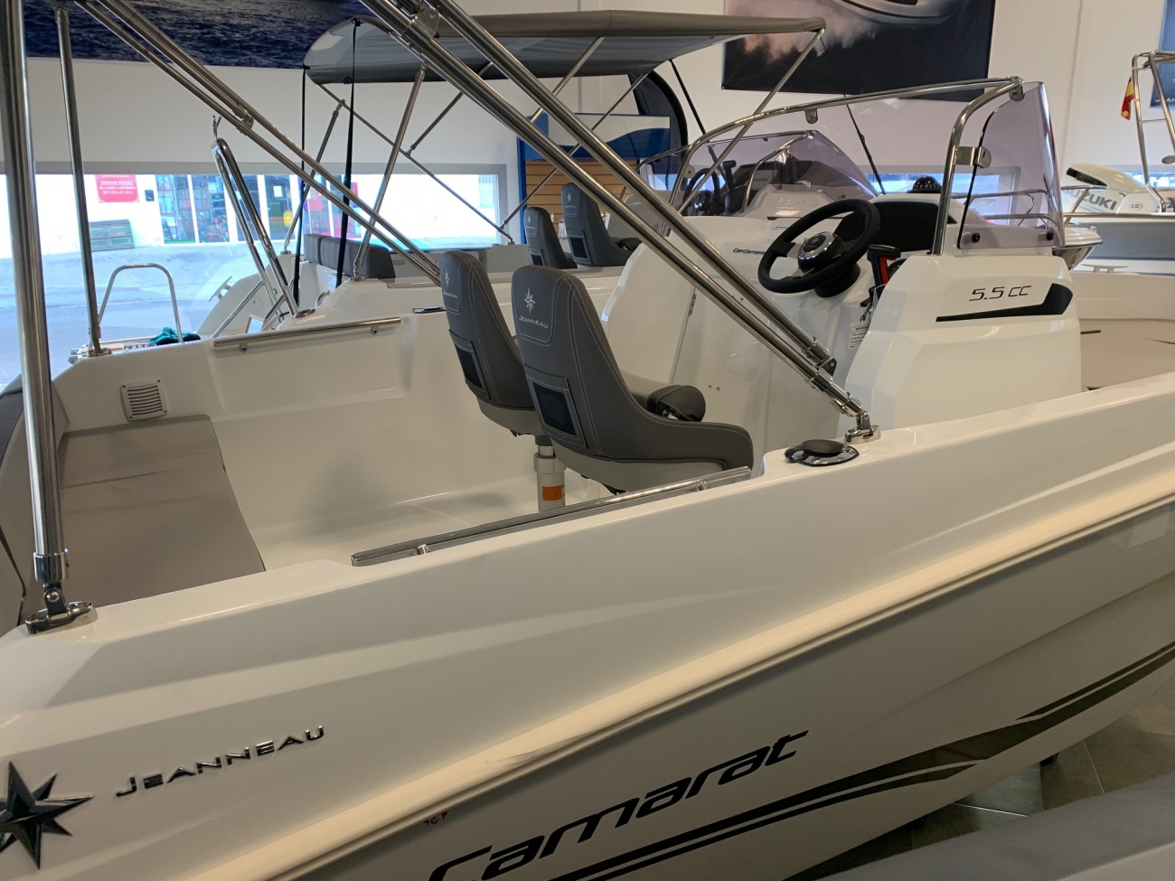 Fantástica embarcación Jeanneau Cap Camarat 5.5CC Serie 2 - OPORTUNIDAD reestreno, muy pocas horas de navegación y perfecto estado. El diseño del casco hace que la navegación se sienta segura y cómoda. Además, la distribución interior con el gran solarium en proa, y la práctica consola central junto con los asientos y banco trasero en popa, es ideal para salidas diarias, para la práctica de cualquier deporte náutico, salidas familiares o con amigos. Disfruta del mar con esta genial embarcación. Otras ventajas: se puede llevar con licencia de navegación, y no pasa inspección ITB al ser inferior a 6 mts de eslora.